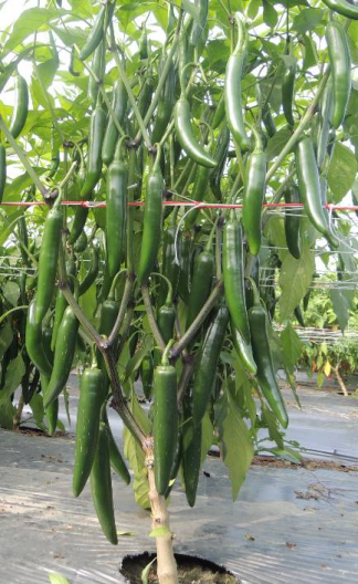 Kích thước trái 12 x 2.3 cm. Vị cay vừa, trái non màu xanh đen khi chín màu đỏ tươi trơn bóng.